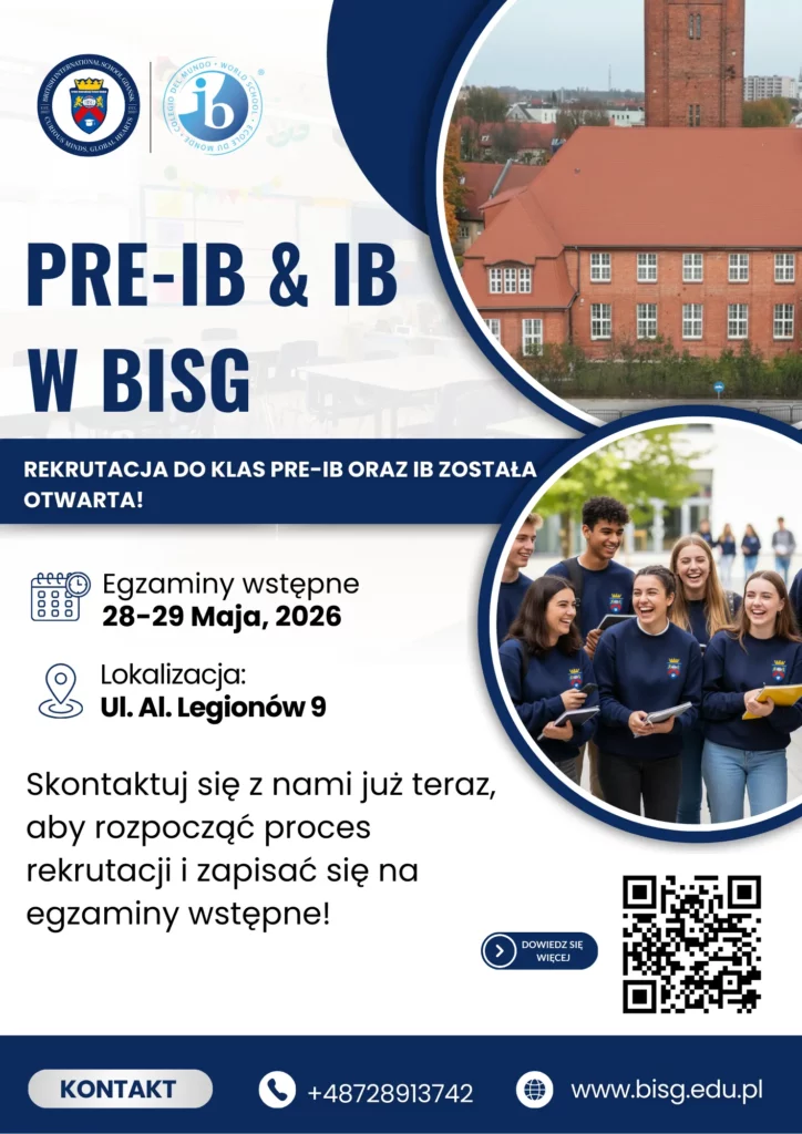 British International School Gdańsk (BISG) z dumą ogłasza, że rekrutacja do naszych prestiżowych programów Pre-IB oraz Matury Międzynarodowej (IB Diploma Programme) na rok akademicki 2026/2027 została oficjalnie otwarta.